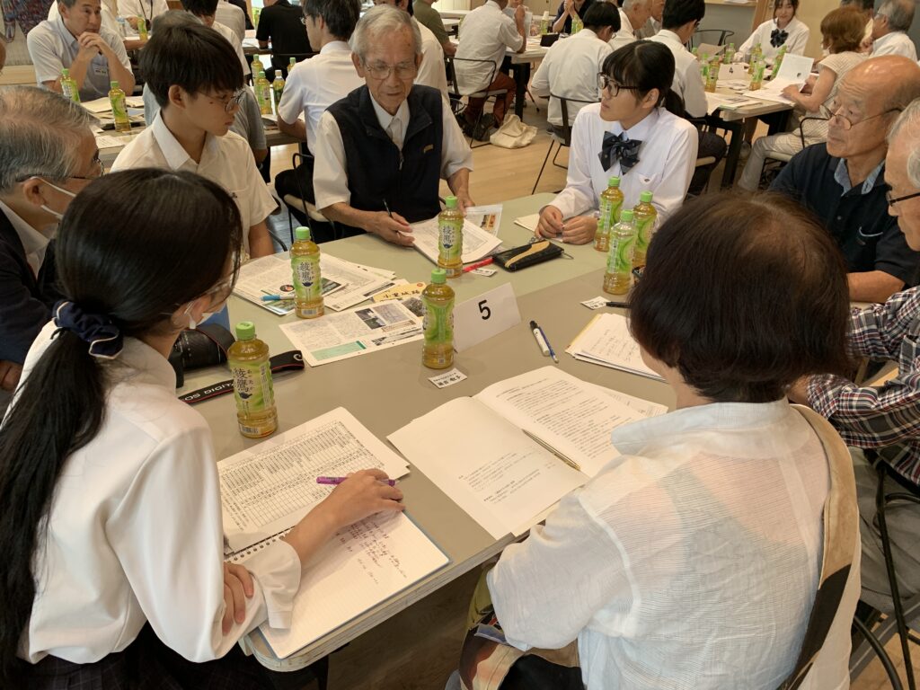 その後、ワークショップとして6つのグループに分かれ、研究発表や各文化財保護団体の活動を関連させて、テーマについて話し合いました。高校生とOB19名にも各グループに加わってもらい、熱心に話し合われました。活動の状況や課題について共有することができるとともに、高校生の考えや思いを知り、次世代の子ども達への働きかけへの手がかりを得ることができました。研究発表やワークショップで学んだことを今後の文化財保護に活かしていきたいです。